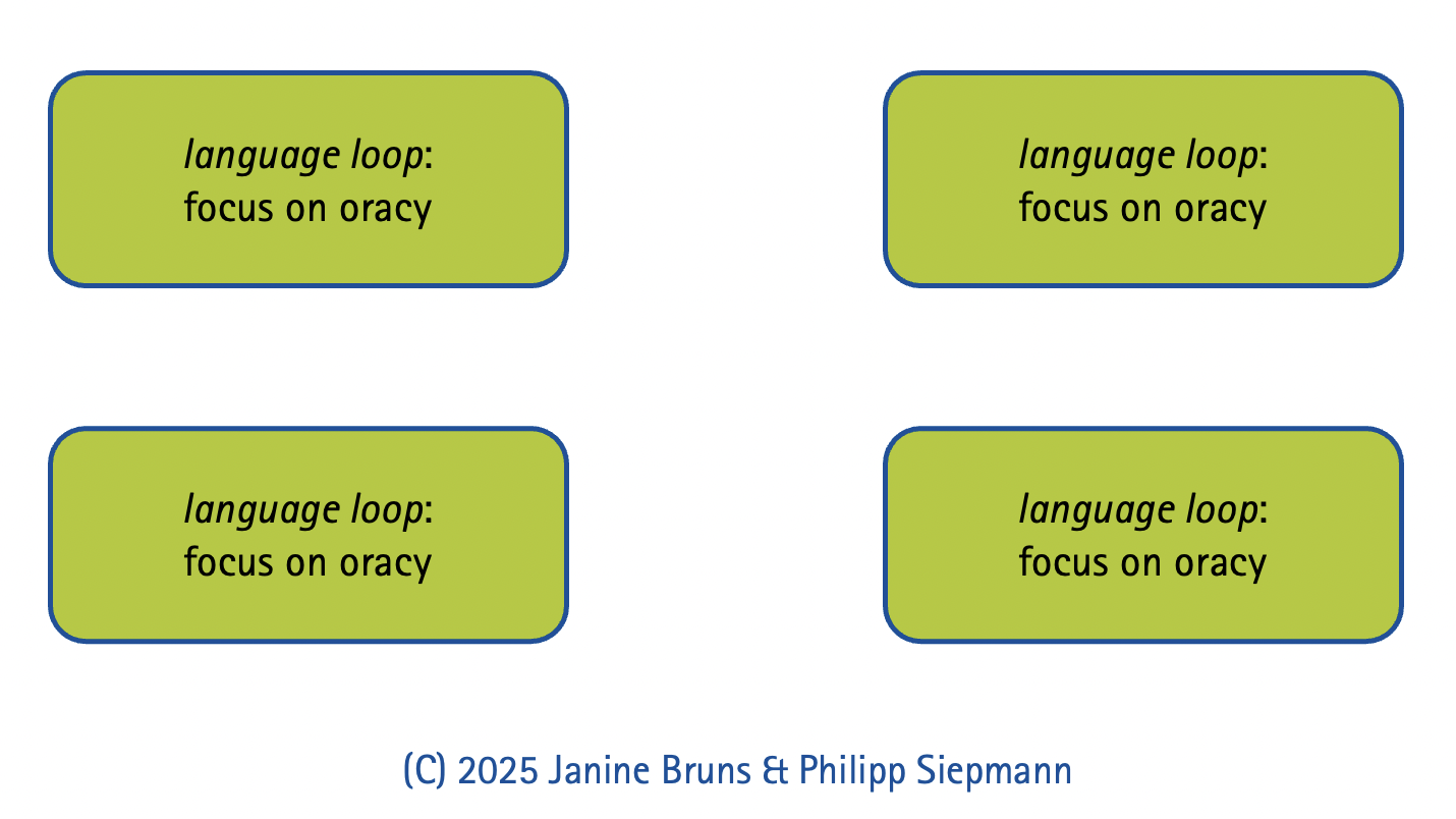 Ein weiteres Merkmal des OraCycle neben komplexen Aufgabendesigns, Genreorientierung und Verknüpfung von formativer und summativer Leistungsbeurteilung sind gezielte, explizite Übungseinheiten, die in den ansonsten projektorientierten unterrichtlichen Rahmen eingebettet sind. Die language loops orientieren sich an den vier Strängen des oracy skills framework: