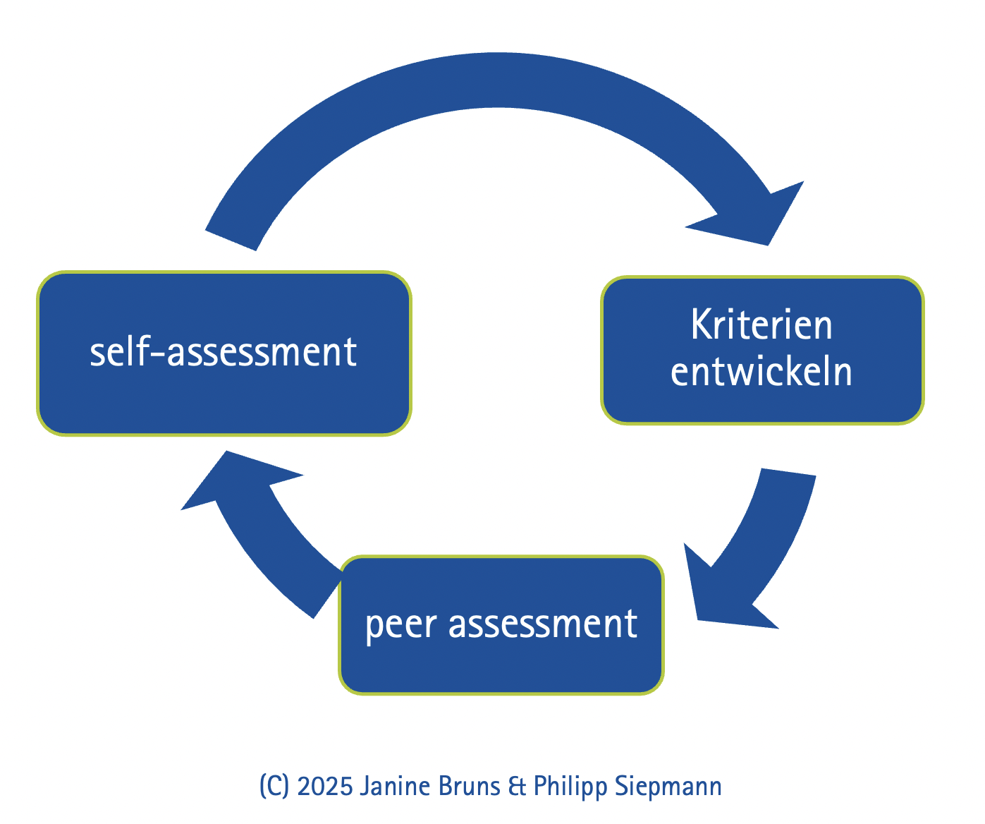 Die Selbst- und Fremdeinschätzung kann der Lehrkraft auch zur Diagnostik und so zur Planung der gezielten Übungseinheiten (language loops) nutzen. Dies kann durch digitalisierte Selbst- und Fremdeinschätzungsbögen erleichtert werden. Aus den gebündelten Rückmeldungen sollte sich ein ungefähres Bild derjenigen Beurteilungsaspekte abzeichnen, die den Lernenden die größten Schwierigkeiten bereiten.